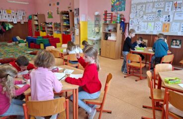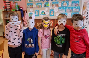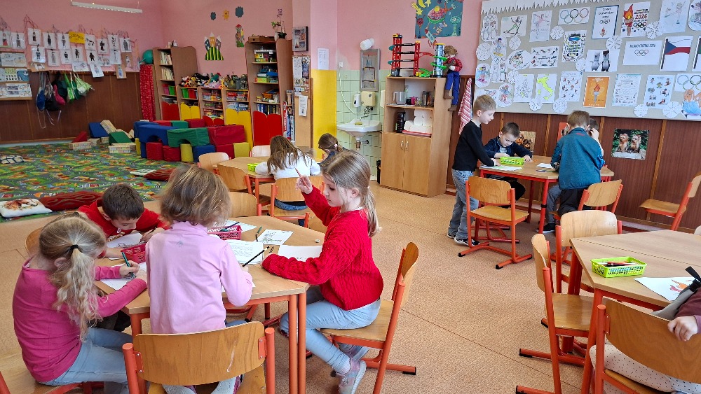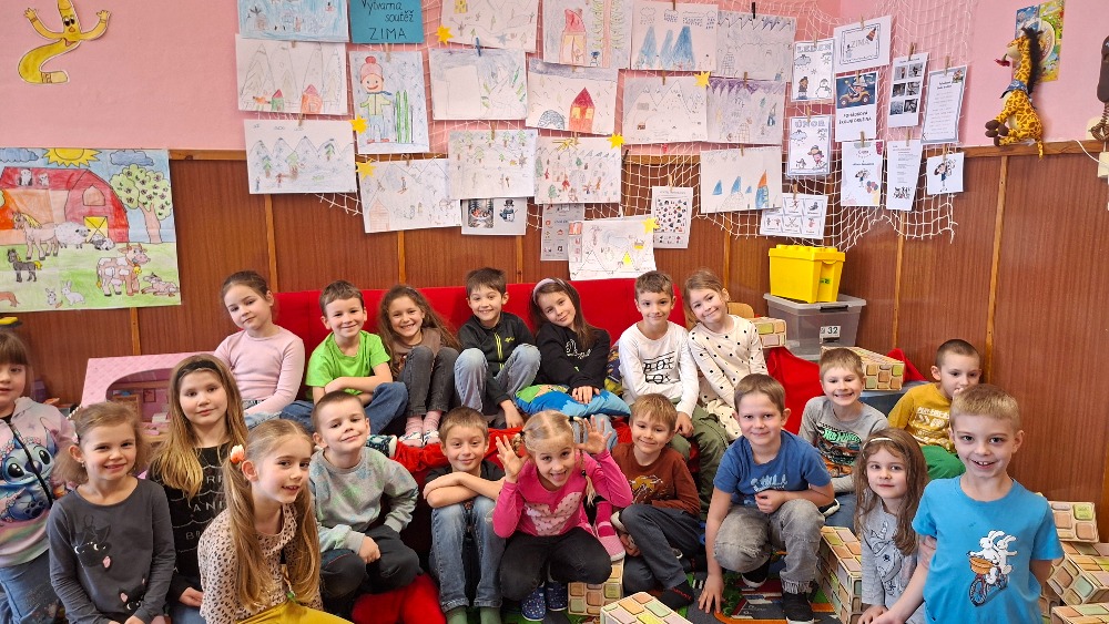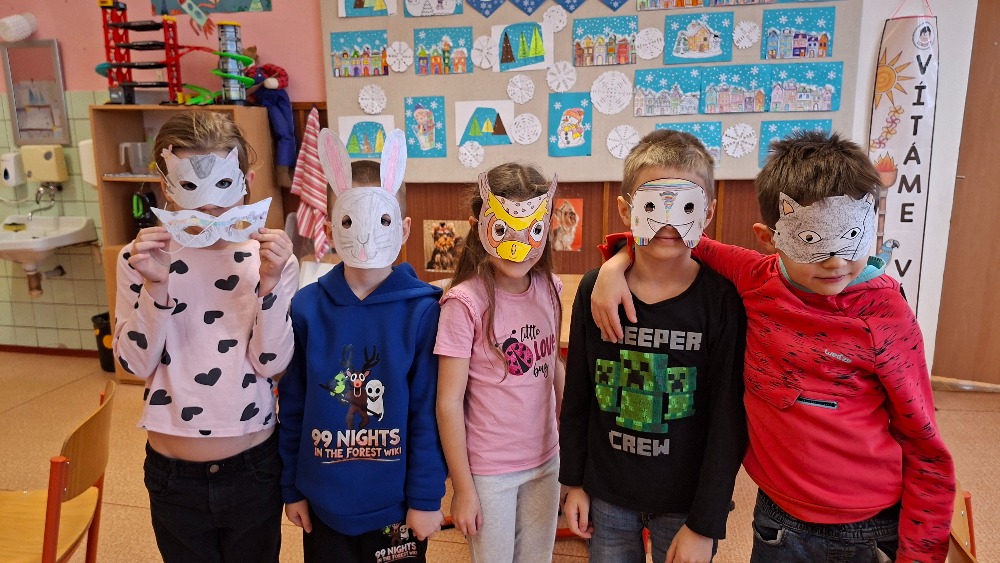 Měsíce leden a únor jsme s dětmi trávili aktivitami v herně nebo pobyty venku. Letos jsme se dočkali i sněhu, takže bobování a hry na sněhu nám zpestřily více dní. Leden jsme začali novou nadílkou pod stromečkem, hrou na Tři krále, vyhodnotili jsme nejlepší malíře ve výtvarné soutěži Zima a nejaktivnější děti ve „smajlíkové“ soutěži. V únoru nás paní knihovnice poprosila o masopustní postavičky na výzdobu knihovny, to jsme lehce zvládli. Vyrobili jsme si také škrabošky na masopust a zašli si na představení do kina. Po jarních prázdninách jsme se věnovali olympiádě, děti kreslily, fandily a spoustu se toho o olympijských hrách dozvěděly. Ke konci února už jsme začali hledat na vycházce první sněženky a těšit se na jaro.