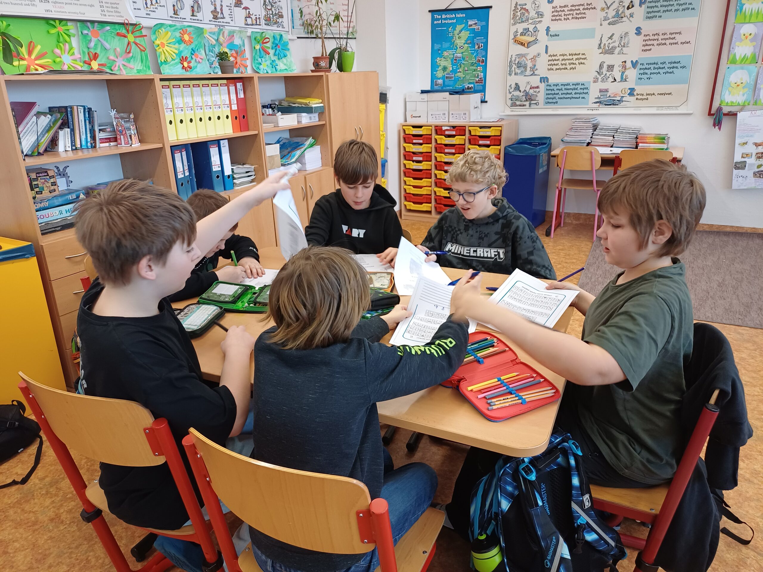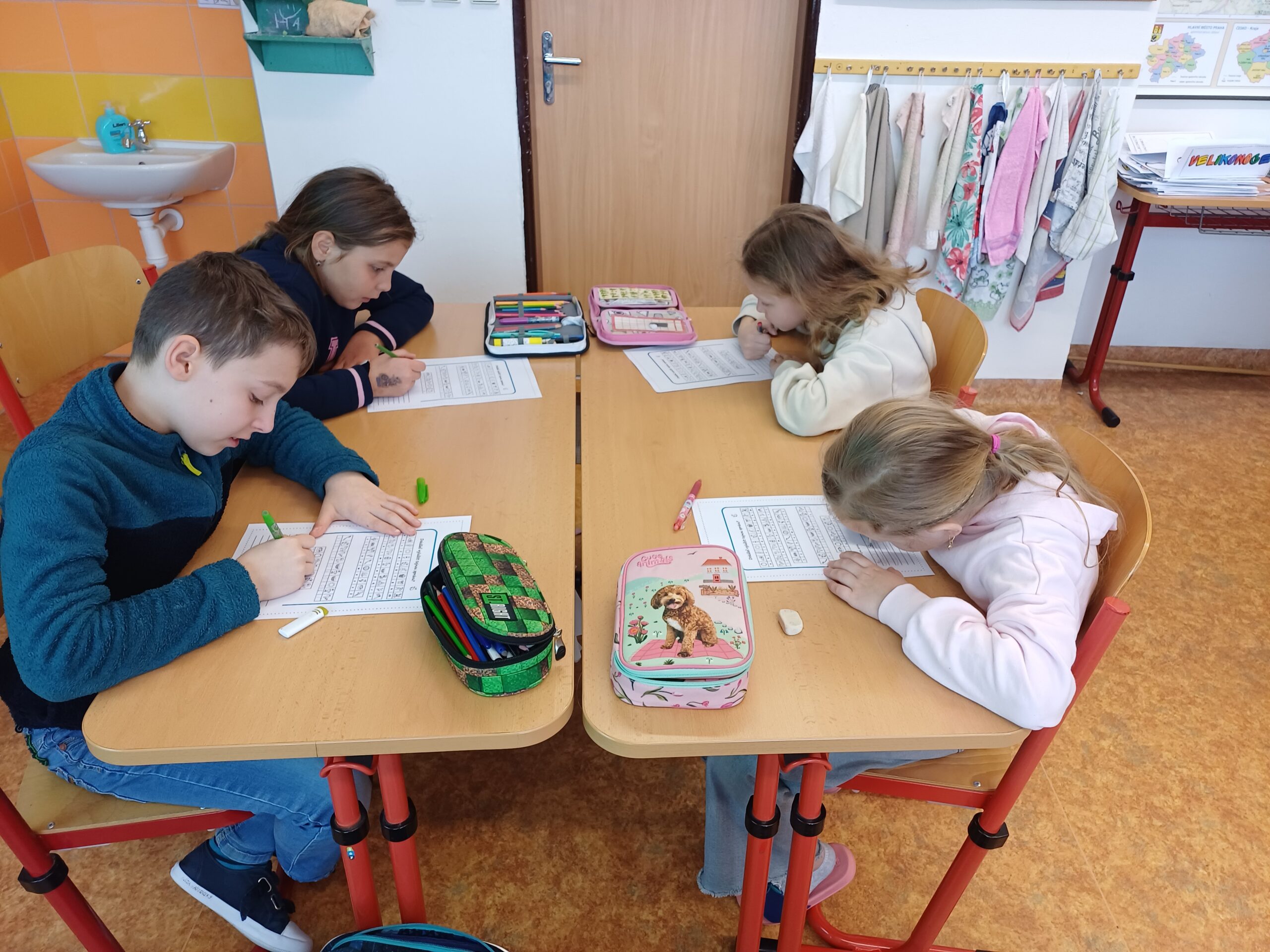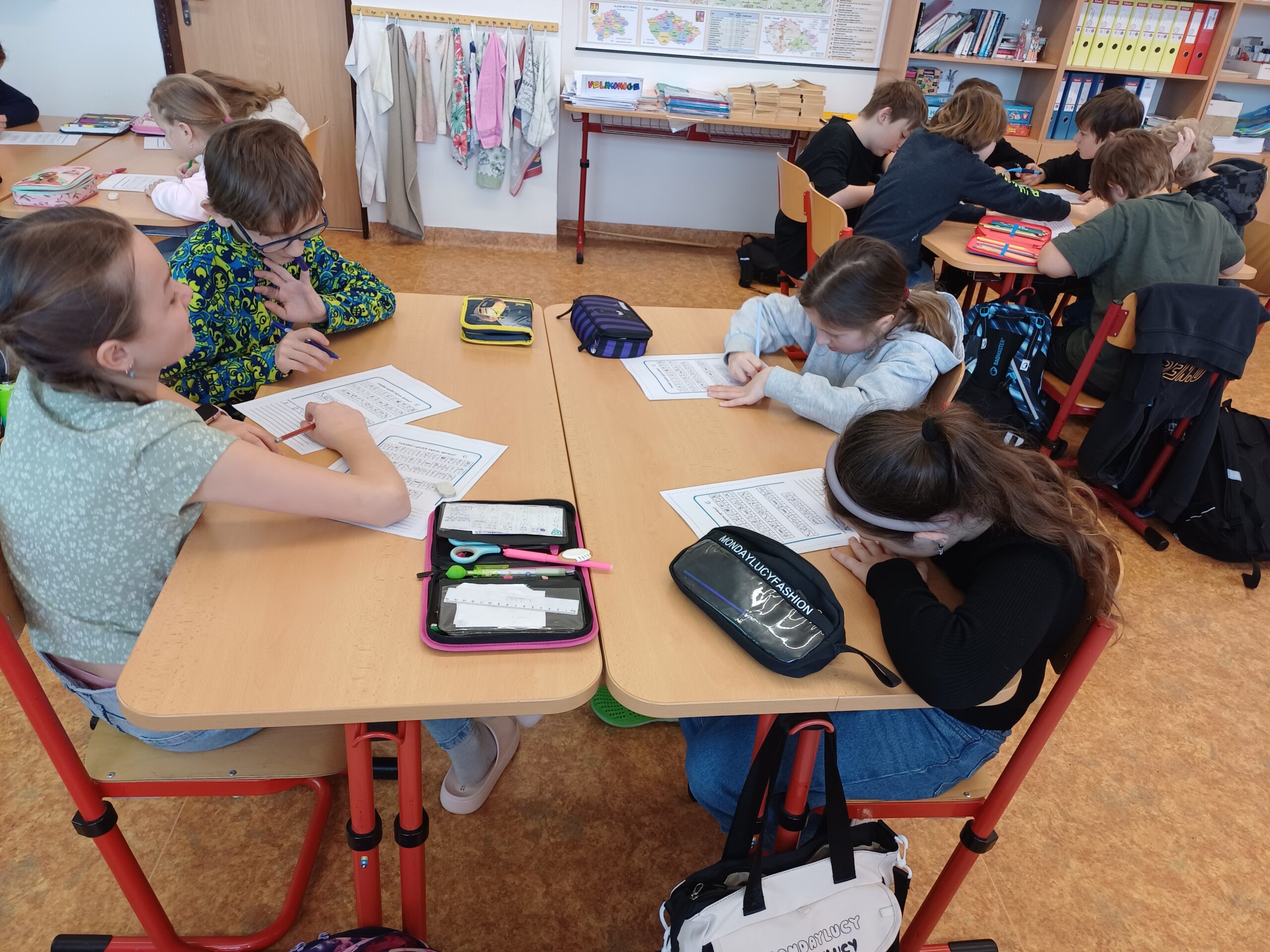 Žáci pracovali ve skupinách, kde společně řešili nejrůznější logické úlohy, nad kterými se občas pěkně zapotili. Řešili matematickou křížovku, která potrápila nejednu hlavičku. Kromě toho pracovali s texty, do kterých doplňovali různé informace.
