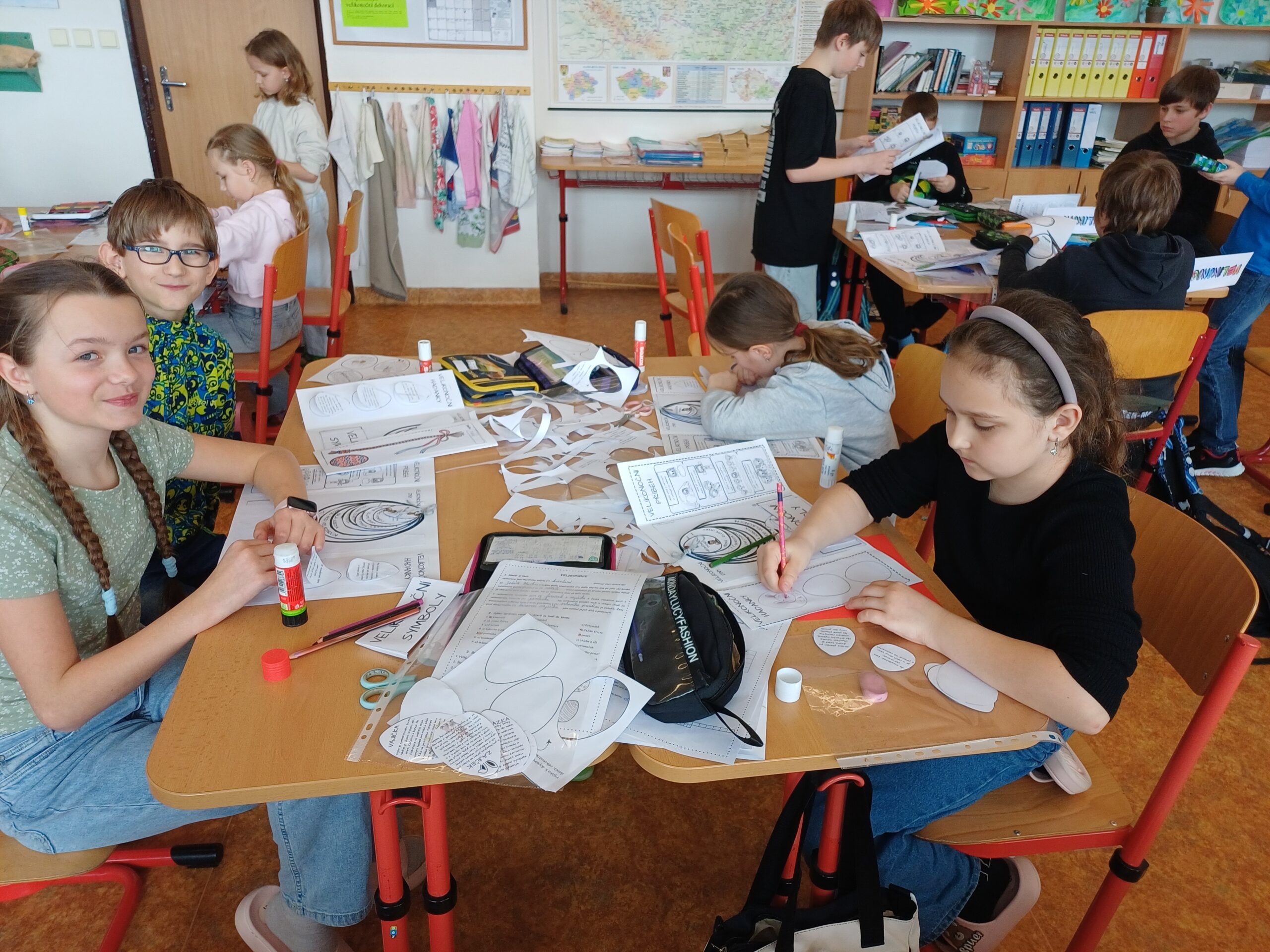 Velkou část projektu tvořila výroba vlastního lapbooku. Děti si do něj zapisovaly, kreslily i lepily vše, co se o Velikonocích dozvěděly. A že toho nebylo málo – poznaly různé velikonoční tradice a zvyky.